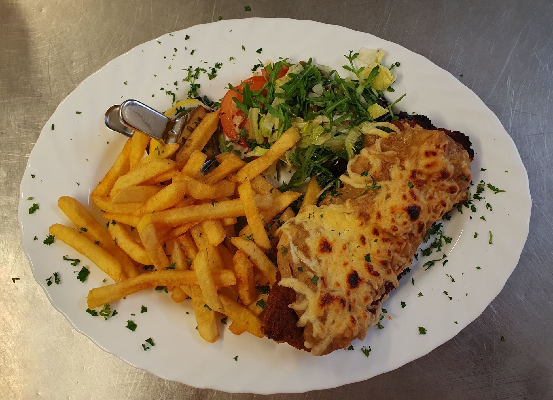 Das Auge isst mit. Sehen Sie sich die Beispiele für einige unserer beliebtesten Gerichte an, werfen Sie einen Blick in unsere Gaststube und auf unsere Speisekarte